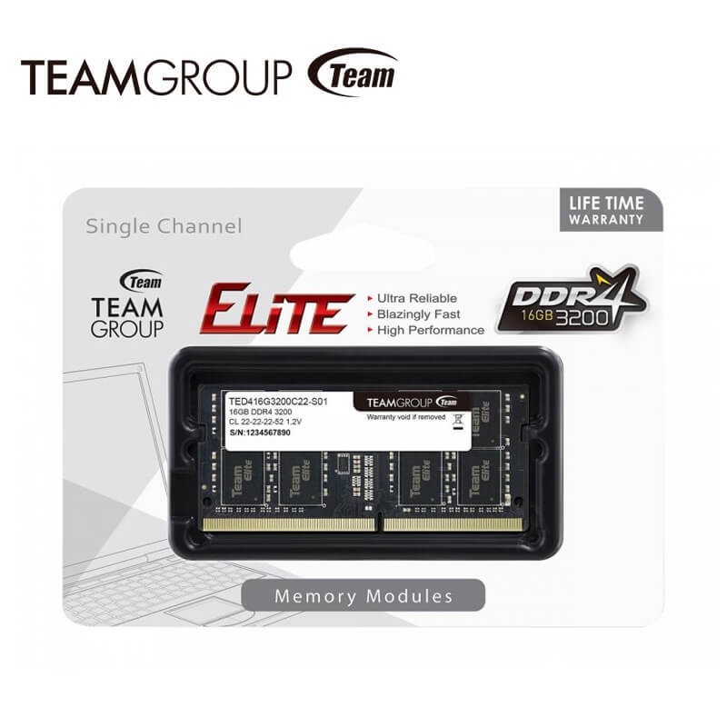 MEMORIA SODIMM DDR4 TEAMGROUP ELITE 16GB 3200MHZ 1X16GB ( TED416G3200C22-S01 )